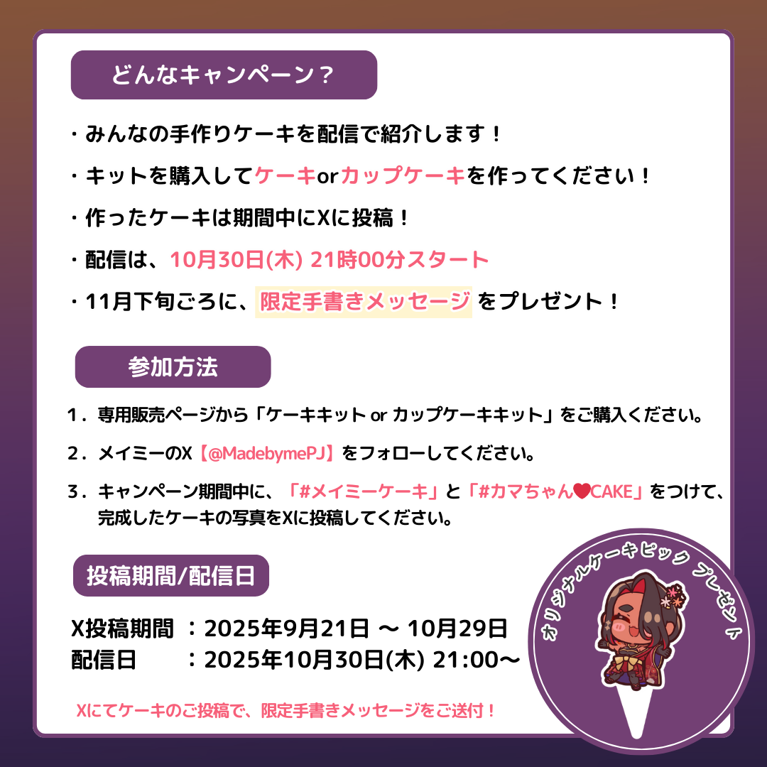 みなさまの手作りケーキをカルプ・マーガレットさんにご紹介いただくキャンペーンを実施予定。
